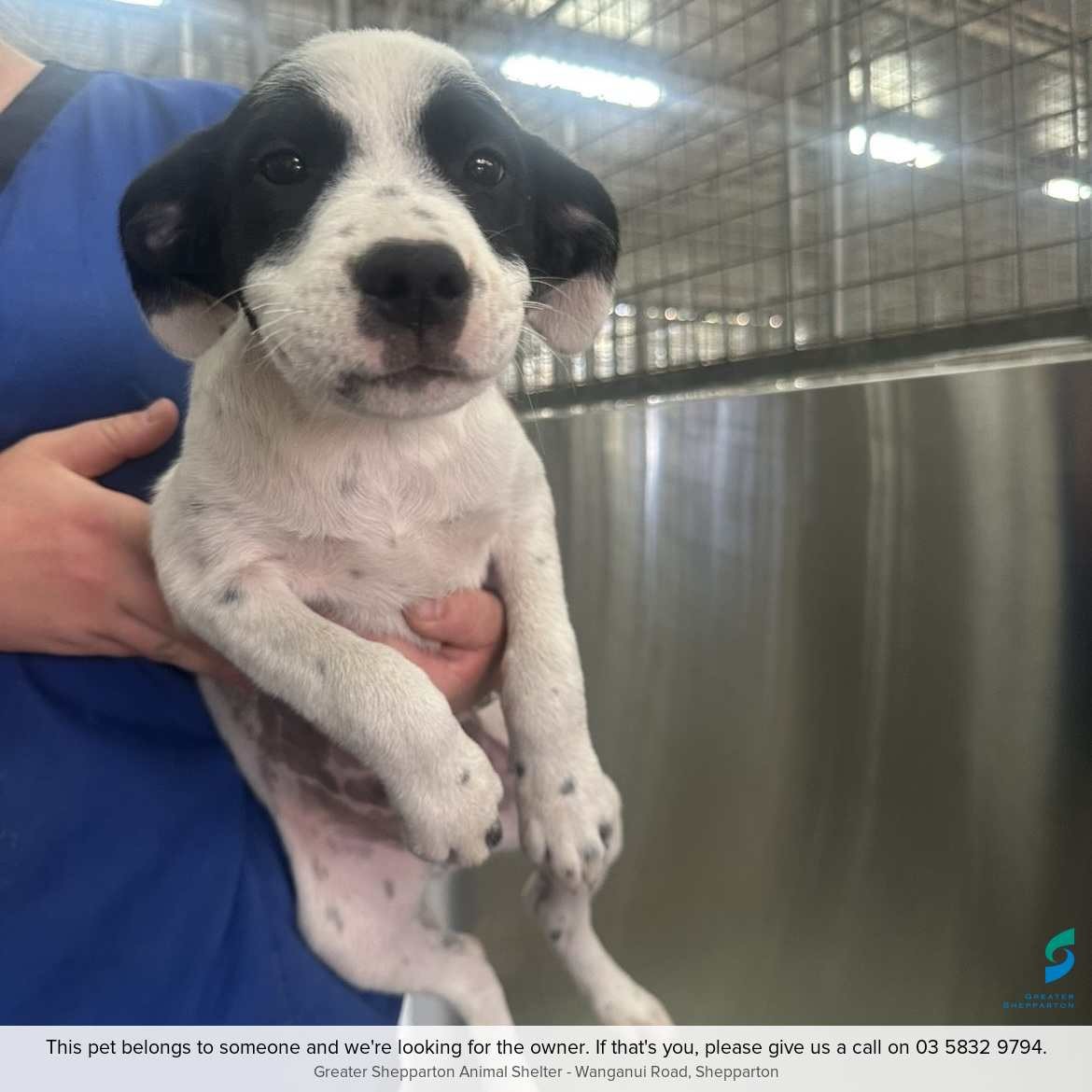 Please contact the Shepparton Animal Shelter on 03 5832 9794 to find out more or to claim this animal. You can also visit the Animal Shelter at 125 Wanganui Road, Shepparton, by appointment.