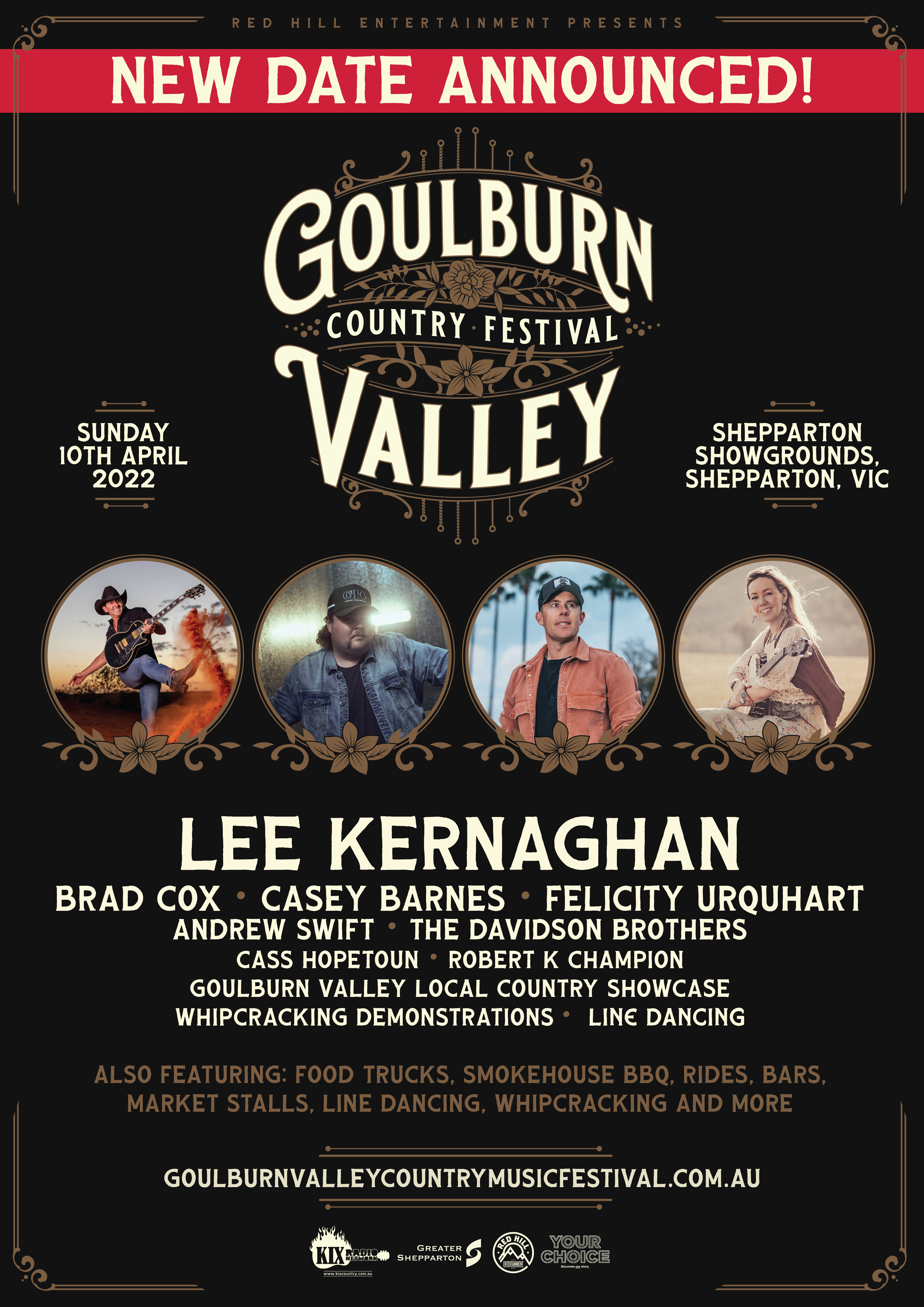 The Shepparton based event will still feature the same coveted line-up, headlined by Lee Kernaghan, with special guests Brad Cox, Casey Barnes, Felicity Urquhart, Andrew Swift, The Davidson Brothers and some of the most exciting up-and-coming acts on the live scene today.
