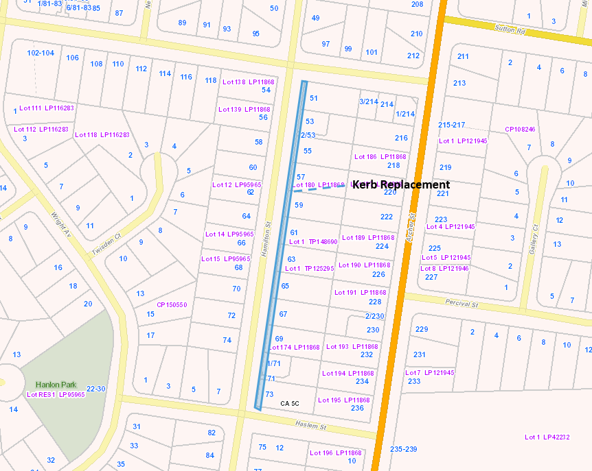 The works will involve removal and the construction of new Kerb and Channel. The replacement works are from Haslem Street to Macintosh Street eastern side of the road. It is anticipated; weather permitting, that the works will be completed in approximately 3 weeks.